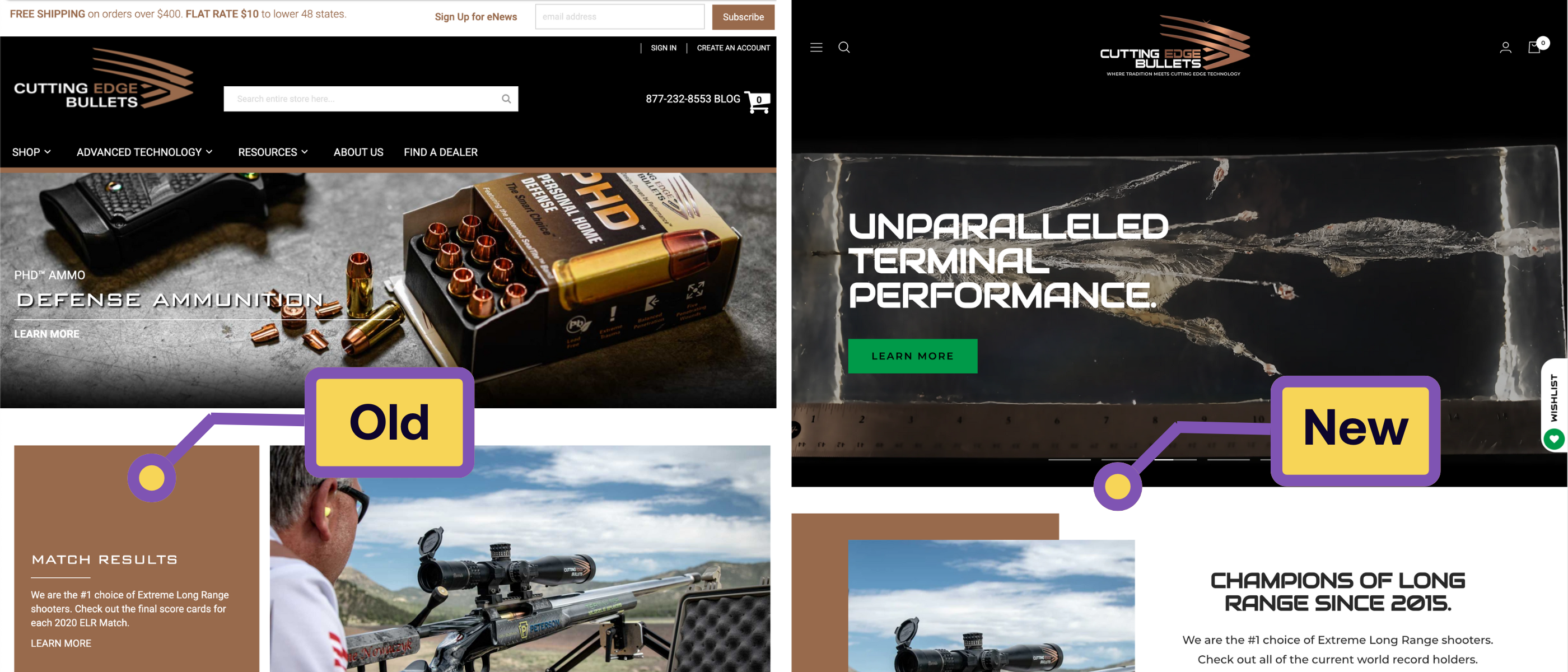 They migrated to Magento (with the Smartwave Porto theme) in early 2017—seven years is not a bad lifespan for a platform. However, like everything else, roadblocks are hit and better options are found. Shopify is Cutting Edge Bullets' choice for the next seven years.